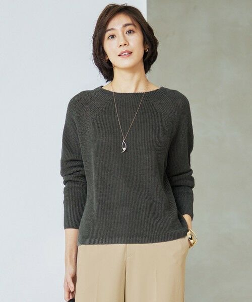 【カタログ掲載・WEB限定カラーあり・洗える】リネンミドルゲージボートネック ニット