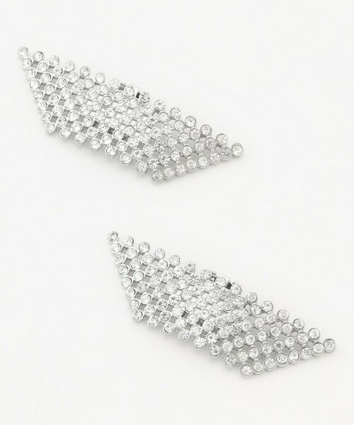 モダンなシェイプのビジューアクセサリー。 台形のような幾何学的な形状でフェミニンに寄りすぎず、ガラスビジューのため輝きがクリアで華やかです。 キラキラモチーフは足元を華やかにしてくれるので、オケージョンシーンにもぴったり。