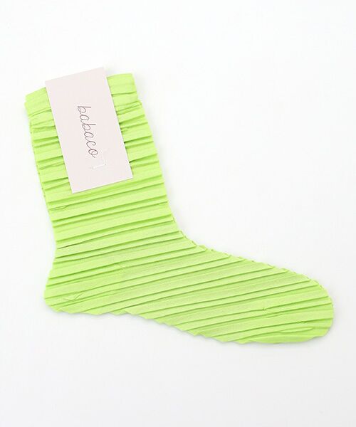 クラッシュ加工が施されたソックス。上質なツヤ感のあるポリエステル糸を使用しています。