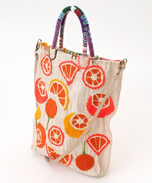 食品用のプラスチック袋をアップサイクルし、華やかな刺繍が施されたサスティナブルなバッグ。ハンドル部分のビーズをデザイン変更したスタイル&エディットの別注です。ファンシーかつファッション性の高いアイテムに見えながら、内側のポケットや付属のショルダーベルトなど、使いやすさも考えられた仕様になっています。※職人によるハンドメイドの為、バッグのサイズや刺繍などに個体差がございます。