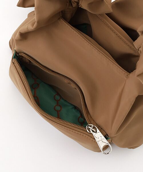ドローストリングでバッグストラップにギャザーを寄せたり、リボンを結び直してボリュームが調整できたりと表情を変えられるのもポイントです。