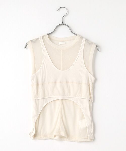 レイヤードしたようなタンクトップ。コットンの優しいシアーな風合いを楽しめます。