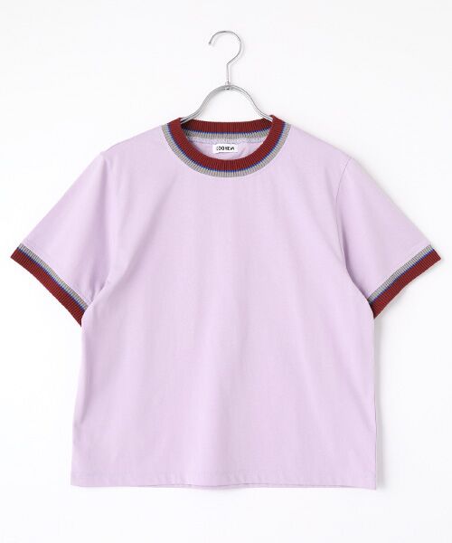 衿・袖口をニットパーツでトリミングしたTシャツアイテム。シンプルになりがちな夏のTシャツコーディネートにアクセントを加えてくれます。 身頃、袖に異なるカラーのジャージー生地を組み合わたカラーブロックデザインです。