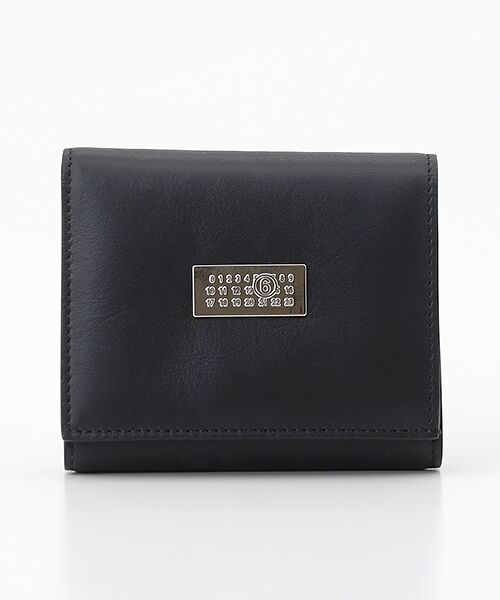 ソフトなレザーの三つ折りウォレット。フロントにはNumericロゴ、バックには白いステッチラインがあしらわれ、ミニマルなフォルムと実用的なディテールがバランスよく組み合わされています。