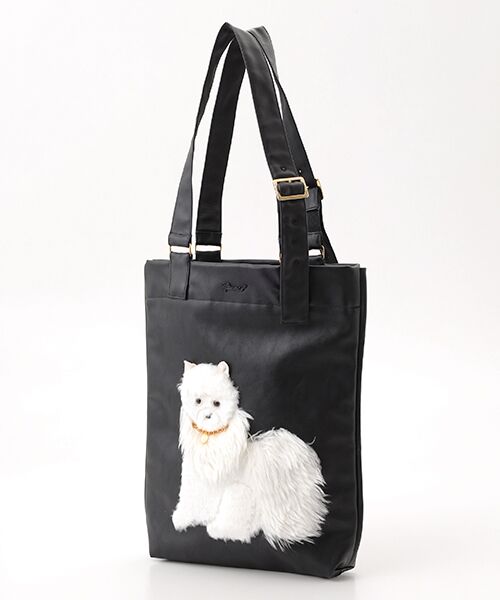 ファーで表現したふわふわのイヌがポイントのバッグ。Mコインを使用した首輪がポイント。B4サイズも入るサイズで、ショルダー部分はベルトになっているので長さを調整いただけます。