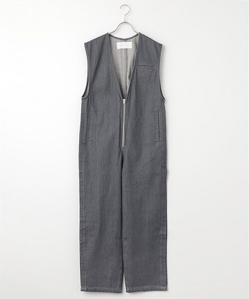 前シーズンまでのオールインワンよりも贅沢に生地を使用し、ボディ全体を包み込むような仕上がりに。肩幅をやや広めに取ることで身体を華奢な印象に演出し、全体のシルエットが逆台形になるようデザインしました。パンツ部分は、わずかにテーパードを効かせたシルエットで、すっきりとしたラインを実現。さらに、胸元とパンツに箱ポケットをあしらうことで、ドレスライクな雰囲気をプラスしています。