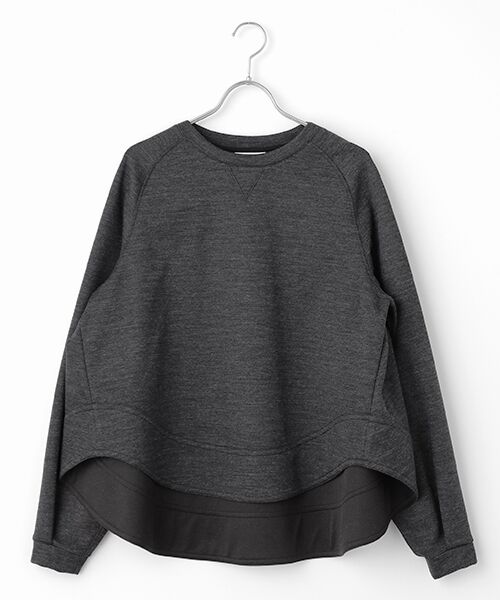 裾に向かってゆるやかに広がるAラインシルエットが特徴的なラグランロングスウェット。ショルダーデティールはラグランスリーブになっており、ラインを肩に水平気味に入れ、カジュアル感を抑えています。ボリュームのある袖は、重力に対し袖がまっすぐに落ちることでアームホールに無駄なしわがなく、より美しく見える設計となっています。