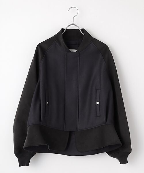 アワードジャケットをベースに、女性らしいアクセントを加えRERACSらしいクラシックなデザインにアレンジされたショート丈ジャケット。ラグランスリーブのショルダーはアームホールにシワが起こりにくく、独自のパターン設計となっています。袖口リブは小丸リブ仕様となっており、後身頃がブラウジングされ丸みのあるシルエットを形成しています。