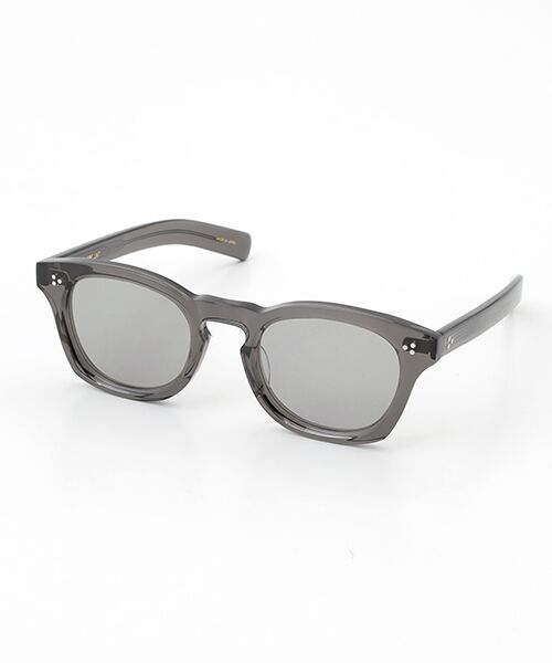 高めに配置されたブリッジとヨロイが特徴的なウエリントンモデル。フレンチヴィンテージによく見る太めで抑揚のない真っ直ぐなテンプルや、日本で1950年代によく使用されていたテンプル芯を使うなどいろいろなヴィンテージ要素が混ざっているが実際のヴィンテージにはないデザインのフレーム。※紫外線カット