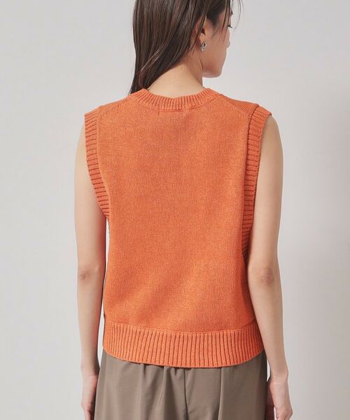 衿元に蓮の花をイメージしたモチーフを施したレイヤードニット。