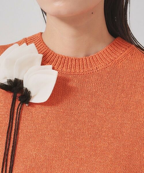 裾と衿周り、袖口にはリブで程よいリラクシー感をプラスし、胸元のコサージュはお好みやシーンによって取り外しが可能です。