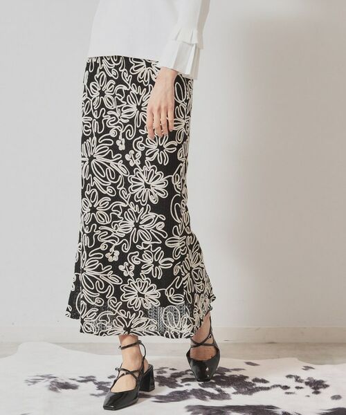配色の刺繍をほどこしているので、レースに使用されている色のトップスや小物を取り入れた華やかなカラーコーデがおすすめです。