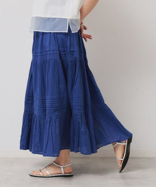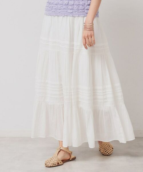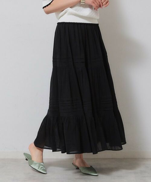 ボリューム感と切替位置が絶妙なバランスのタックティアードスカート。