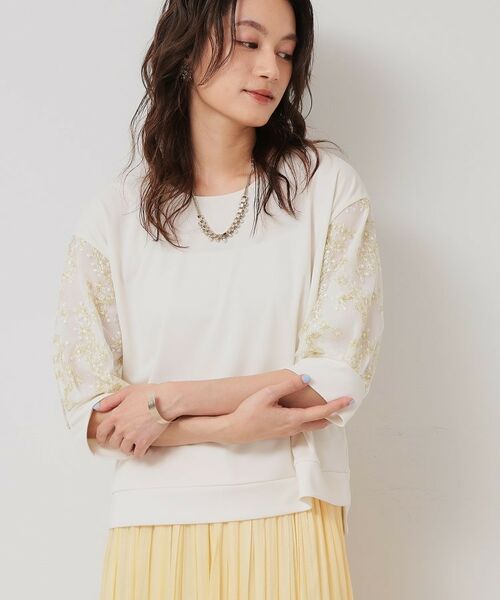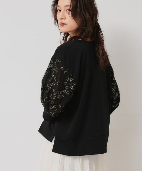 袖部分がシアーなチュール刺繍になっているので程よく透けて抜け感があります。