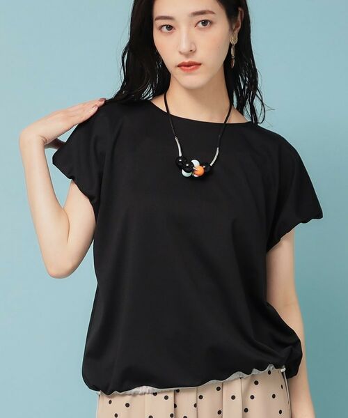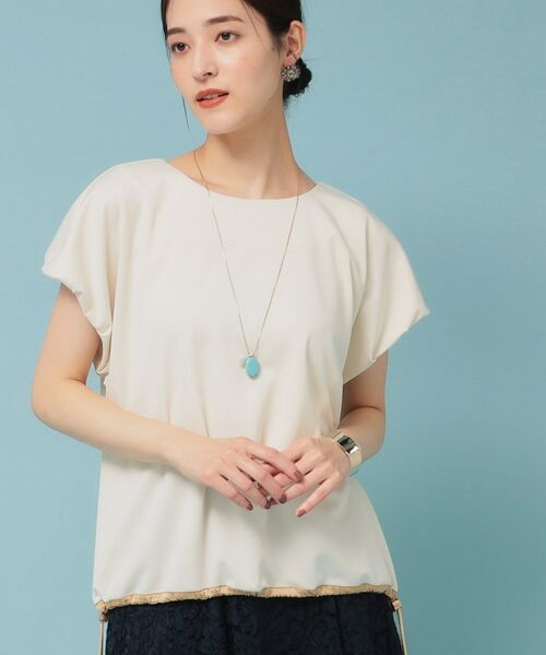 裾に施した配色のドロストコードがポイントのフレンチスリーブプルオーバー。