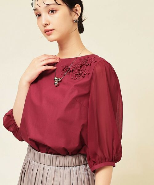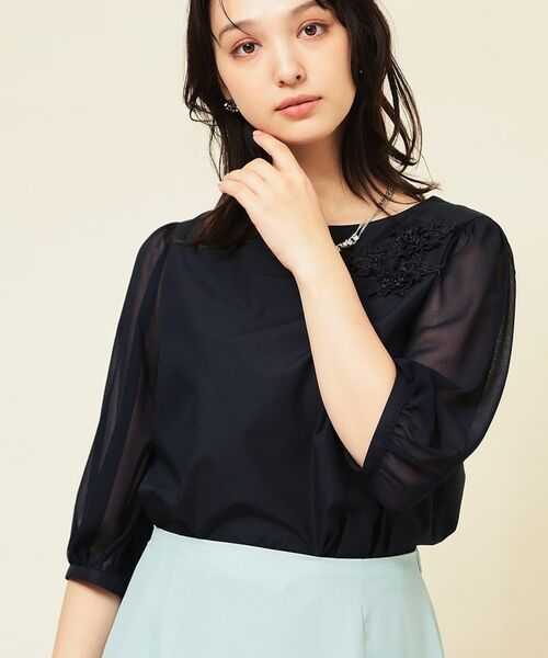 袖にシフォンを使用したまだまだ暑いこの時期に活用するブラウス。