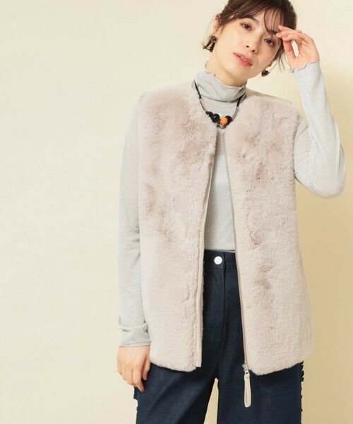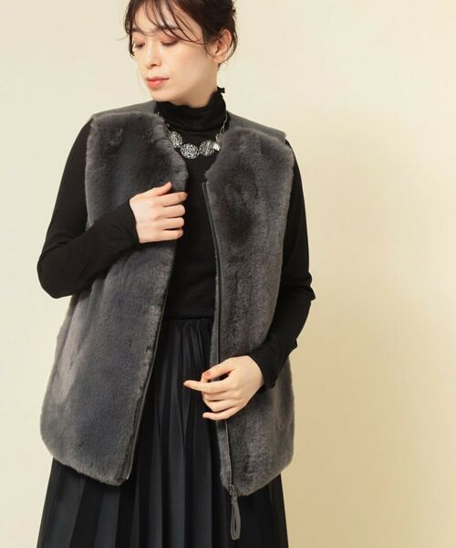 肌触りのよいフェイクファーを使用した着こなしやすいミドル丈のファーベスト。