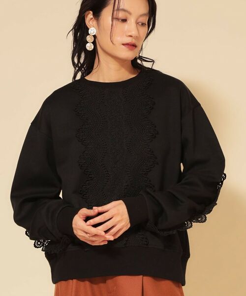 前身頃の大胆なレース使いが個性的なややゆったりとしたオーバーサイズプルオーバー。