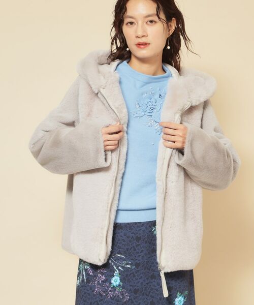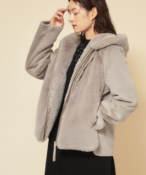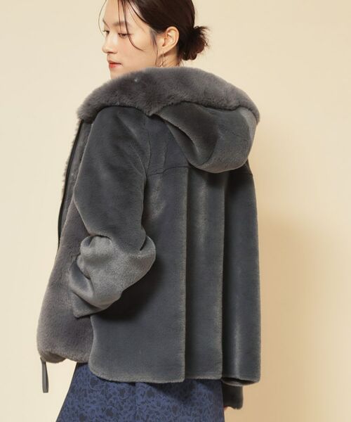 身頃&フードのフレームはリッチなふわっと立体感のあるファーで華やかなアクセントに、後ろはフェイクムートンで着膨れを抑え、どの角度から見てもバランスの良いブルゾンに仕上がっています。