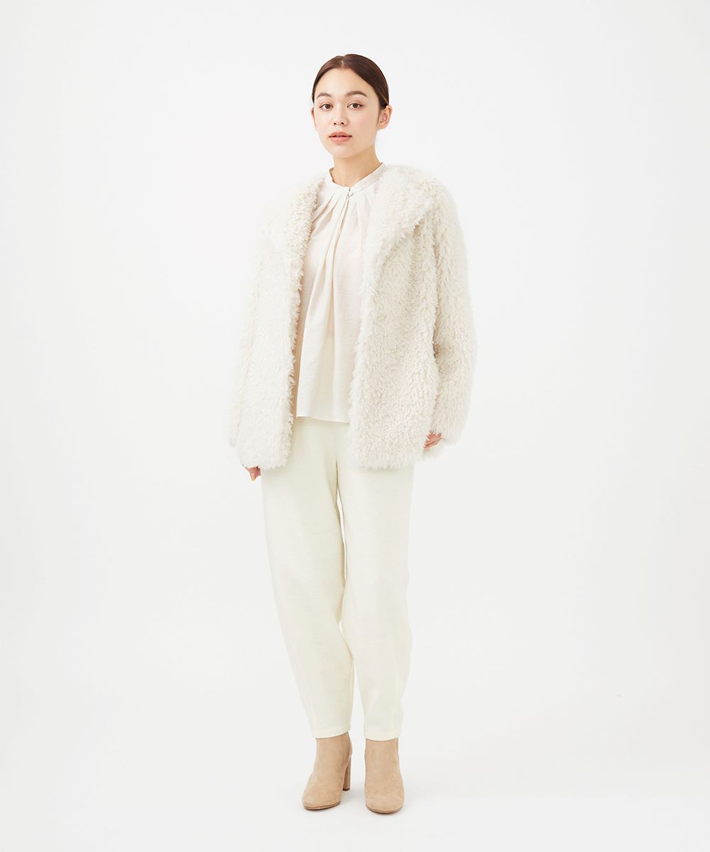 季節感たっぷりのやわらかなファーの表情がコーディネートに個性を加えてくれるショートコートです。