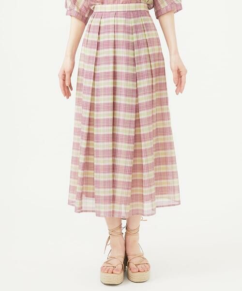 オリジナルカラーの繊細な先染めチェック柄のタックスカート。