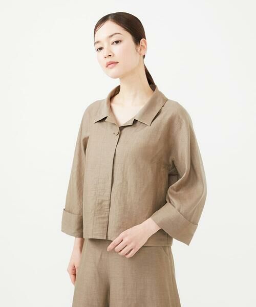リネンの持つナチュラルな風合いに、ポリエステルのハリをプラスしたカールマイヤー(経編み機により編まれた素材のこと)素材を使用。