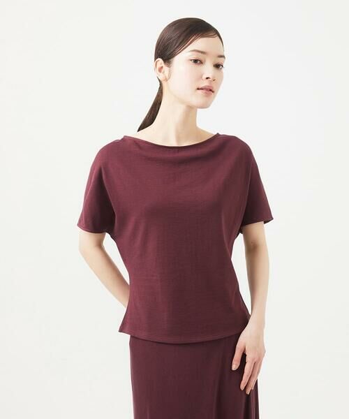 広く開いたデコルテラインが鎖骨を美しく引き立てるカットソーです。