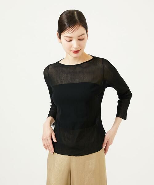 ドレスやジャンプスーツのレイヤードに最適なシアーカットソー。