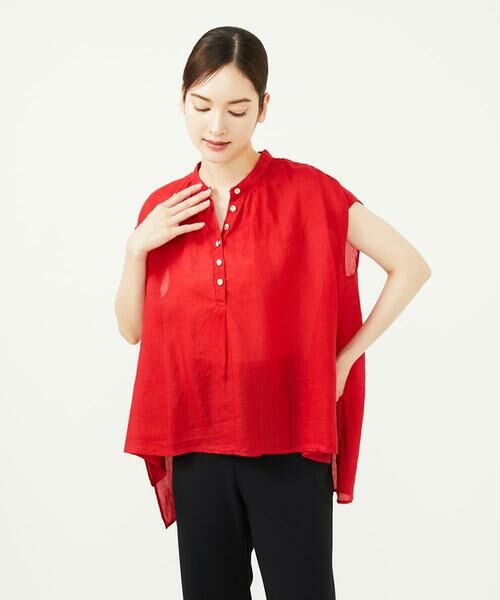 涼しげなリネンローンを使用したプルオーバータイプのブラウス。