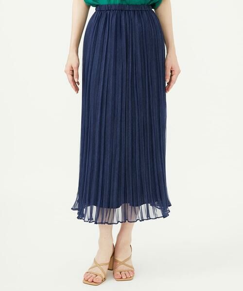 Sybilla / シビラ ロング・マキシ丈スカート | 転写デニムプリーツスカート(ネイビー)