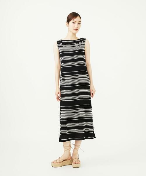 Sybilla / シビラ ロング・マキシ丈ワンピース | ボーダージャカードジャージードレス(ブラック)
