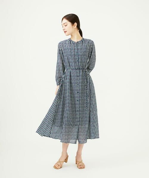 共布の細リボンでウエストマークすると、よりエレガントにスタイルアップ。