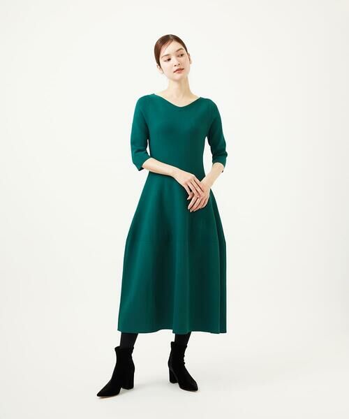 Sybilla / シビラ ロング・マキシ丈ワンピース | フォルムフレアニットドレス(グリーン)