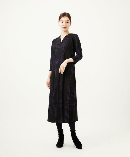 リーフ柄コード刺繍ジャージードレス