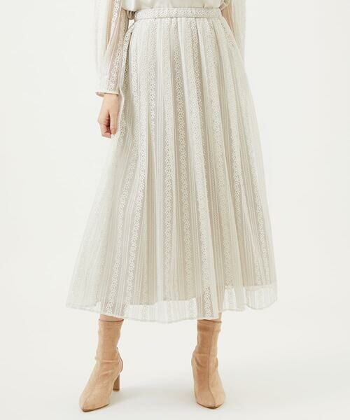 Sybilla / シビラ ロング・マキシ丈スカート | ストライプレーススカート(ライトベージュ)