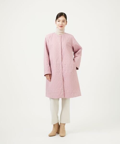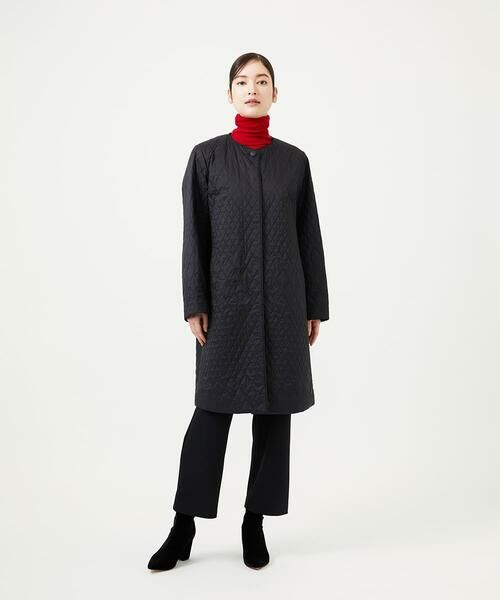 ダイヤ柄のステッチを、大小のグラデーションで表現した中綿キルトコート。