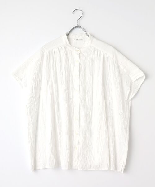 肩ヨークから前後の身頃にたっぷりのギャザーを入れたオーバーサイズのブラウスです。
