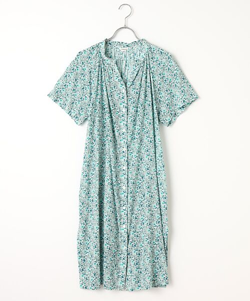 バンドカラーがついたキーネックや、ラグラン切替のフレンチスリーブ、裾両脇の長めのスリットもこなれた雰囲気で仕上げました。