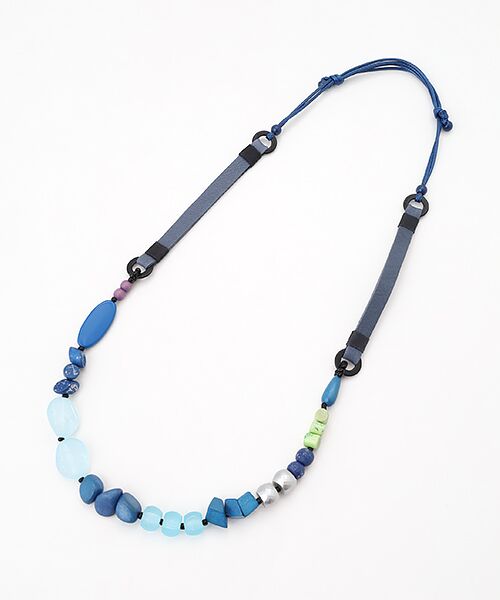 素材も形も異なるさまざまな種類のビーズをバランスよく連ねたネックレス。