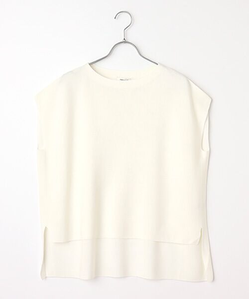 前より後ろが長いイレギュラーなヘムラインをスリットがつないたデザインで、こなれた雰囲気で仕上げました。