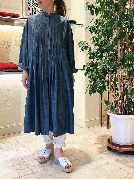 家庭で洗えるデニムのワンピースは気軽なデイリーコーディネートの強い味方です。前を開けてハオリとしても使うことができる便利なアイテムでもあります。 モデル身長:152cm