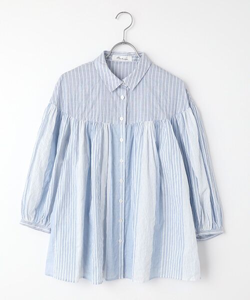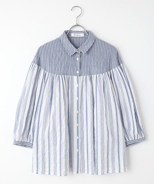 大きなヨーク切替から、たっぷりのギャザーをいれて仕上げたブラウスです。