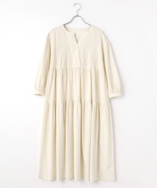 ナチュラルな雰囲気とゆったりとした優雅なシルエットが魅力のアイテムで、上段には繊細なピコミシンを施してデザインアクセントにしています。