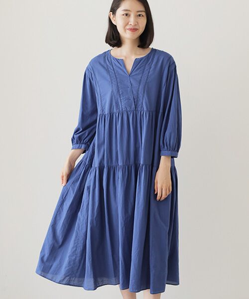裾に向けてだんだんとボリュームを出した三段ティアードのワンピースです。