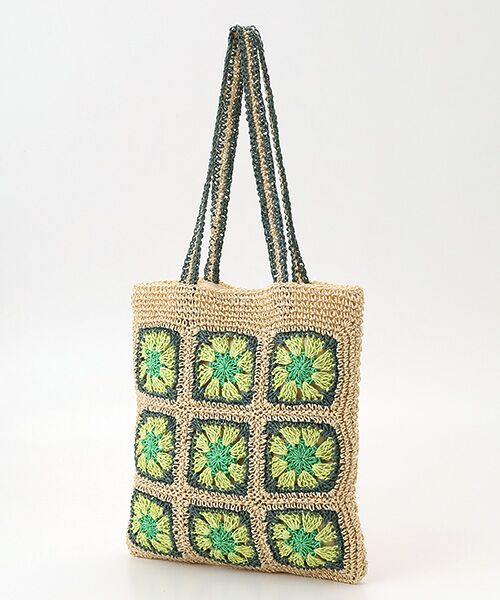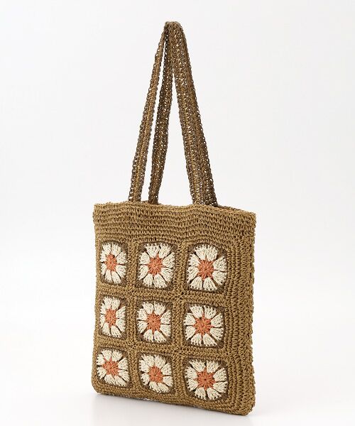四角形に編まれたフラワーモチーフを9ヶつなげて仕上げたフラットバッグです。ラフィアのようなナチュラルで涼しげな雰囲気で、カジュアルで軽い仕上がりです。バッグの口にはマグネットがつき安心感があります。*内側にポケット1ケつき*裏地つきイタリアの『VINCENT PRADIER』(ヴァンサンプラディェ)の製品です。【VINCENT PRADIER】1977年にフランスで立ち上げられたファッションアクセサリーブランド。シーズンごとの素材を活かした製品作りに定評があります。デザインをフランスから発信し、生産は中国で行っています。