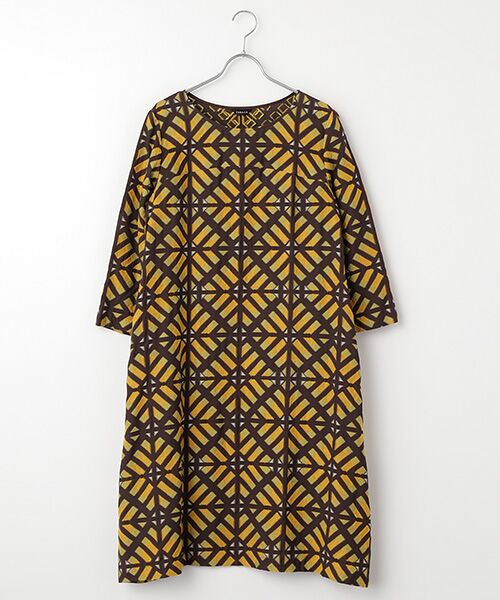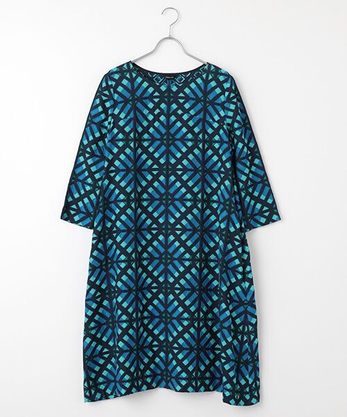 大胆なモザイク柄が目を惹くAラインシルエットのワンピースです。