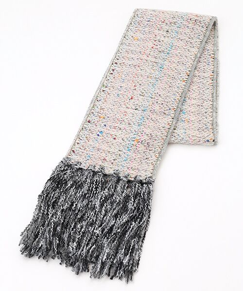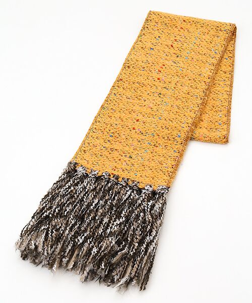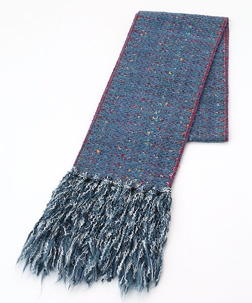 両端についたループヤーンの長くてボリュームのあるフリンジが目を惹くツィードのマフラーです。