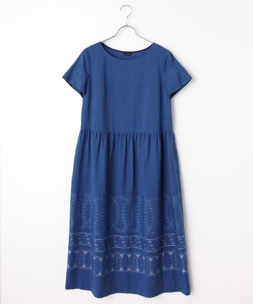 裾周りにジオメトリックジャガードをボーダー状に入れた、ラクして素敵なワンピース。