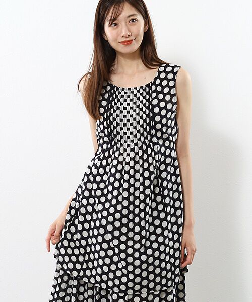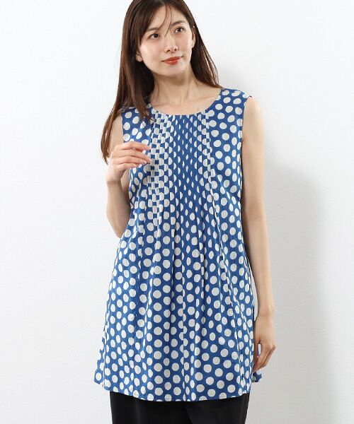 生地、ドットプリント、縫製のすべてをインドで生産した、独特なエスニック感が感じられるノースリーブのチュニックです。
