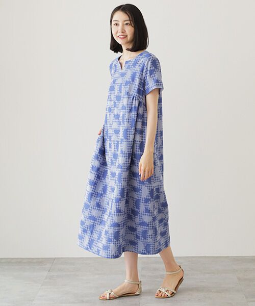 胸のダーツ下にギャザーを入れた、ふんわりとしたAラインシルエットのワンピースです。